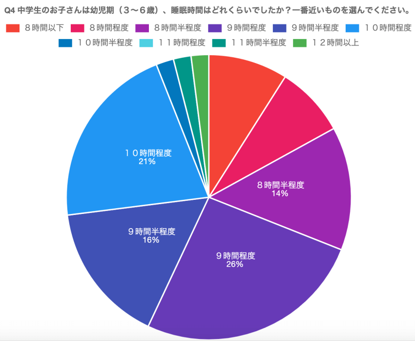 ・中学生のお子さんは幼児期(3〜6歳)、睡眠時間はどれくらいでしたか?一番近いものを選んでください。